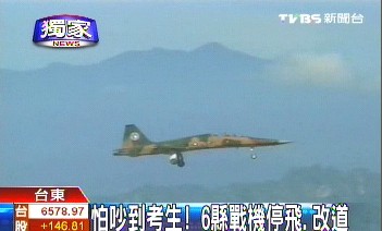 中國臺灣網7月1日消息 據臺灣TVBS電視臺報道,這一兩天是臺灣大學指考(類似于大陸高考),有些考場正好在飛機航道下方,臺灣空軍怕戰機操演聲音會吵到考生,今起命令全臺6個縣市戰機停飛或改航道。