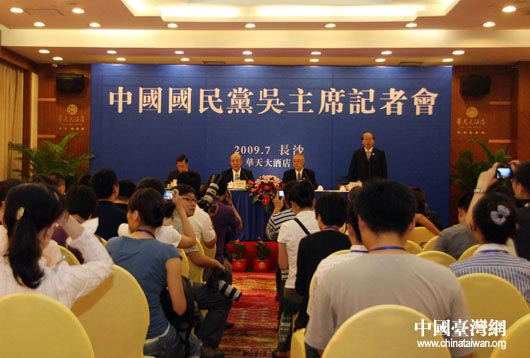 為期兩天的第五屆兩岸經(jīng)貿(mào)文化論壇今日下午在長沙落下帷幕,閉幕式結(jié)束后中國國民黨舉辦記者會(huì),黨主席吳伯雄介紹參加此次論壇的情況,并回答記者提問。(中國臺(tái)灣網(wǎng) 鐘寶華 攝)