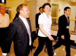海貿(mào)會(huì)辦理“兩岸經(jīng)貿(mào)促進(jìn)考察團(tuán)”第二團(tuán)12日下午抵臺(tái),圖為海貿(mào)會(huì)理事門曉偉(中)。(圖片來(lái)源:臺(tái)灣《中國(guó)時(shí)報(bào)》)