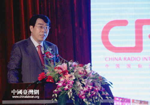 “移動國際在線”今天在北京正式啟動,圖為國際廣播電臺臺長王庚年在啟動儀式上致辭。(中國臺灣網 張弛 攝)