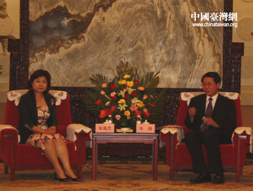 車俊會見朱鳳芝(左)一行。(中國臺灣網 趙靜 攝)