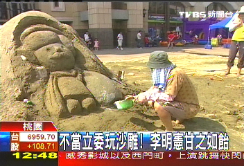 前民進黨“立委”李明憲正在做沙雕,雖然活動不固定,一天收入也不多,但他卻甘之如飴。▓D片來源:臺灣TVBS電視臺)