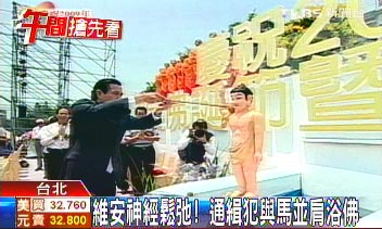 通緝犯與馬英九同臺浴佛。來源:臺灣TVBS電視臺