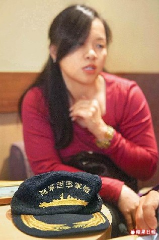女記者賴佳雯出示孫海濤送她的定情物軍便帽,要證明兩人親密關(guān)系。圖片來源:臺(tái)灣《蘋果日?qǐng)?bào)》