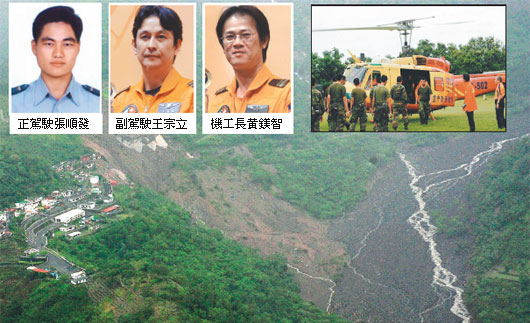 屏東縣伊拉部落成孤島,張順發(fā)等3人駕UH-1H直升機(jī)飛往救人,不幸墜谷。圖片來源:臺灣《聯(lián)合報(bào)》。