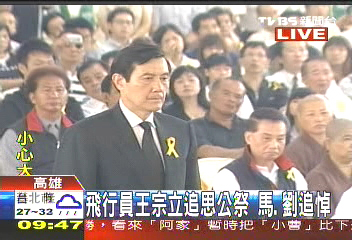 中國(guó)臺(tái)灣網(wǎng)8月23日消息 臺(tái)當(dāng)局領(lǐng)導(dǎo)人馬英九、臺(tái)當(dāng)局“行政院長(zhǎng)”劉兆玄今天前往高雄市立殯儀館,共同出席臺(tái)當(dāng)局“內(nèi)政部空中勤務(wù)總隊(duì)”飛行員王宗立追思公祭;馬英九并頒發(fā)褒揚(yáng)令,表彰及感念王宗立為救災(zāi)殉職。