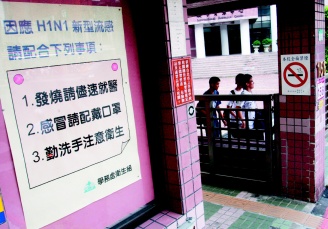 臺北市已有16所學(xué)校因新流感或類流感而停課,圖為臺灣松山高中校門口貼出警語,希望學(xué)生注意自我防護。(來源:臺灣《聯(lián)合報》)