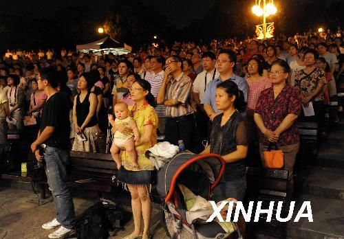 8月26日,在“臺北有愛、情系人間”七夕情人節(jié)祈福音樂會開始之際,臺北市民為風(fēng)災(zāi)罹難者祈禱。臺北市交響樂團(tuán)用音樂為風(fēng)災(zāi)災(zāi)民送上了祝福。圖片來源:新華社