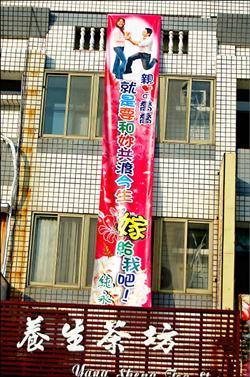 據臺灣媒體報道,云林縣揚子中學老師林純永,在七夕于女友陳喬媚上班的彰化基督教醫院二林分院旁懸掛“嫁給我吧”的大型布條,讓女友在驚喜之余,也高興地喊出:“愿意。”