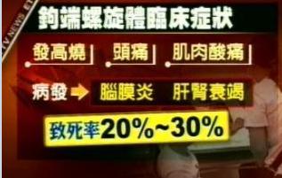 據(jù)臺灣“今日新聞”報道,萬丹鄉(xiāng)后灣村在8月17日爆發(fā)鉤端螺旋體病的疫情,之后附近的7個村鎮(zhèn)也陸續(xù)傳出疫情,據(jù)統(tǒng)計,萬丹鄉(xiāng)通報的疑似案例有180例,全鄉(xiāng)陸續(xù)有90多人住院治療,確定是鉤端螺旋體病的有51人,目前還在住院觀察的有20人,3人住在加護病房。