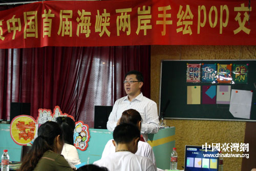 中國臺灣網9月6日消息 首屆海峽兩岸手繪POP交流會在北京舉行,在臺灣手繪POP界久負盛名的簡仁吉老師《POP創意剪貼海報設計》課堂上,許多大陸手繪POP行業的佼佼者都以非常認真的態度學習著簡老師帶來的新內容。