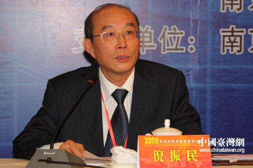 中國教育學(xué)會高中教育專業(yè)委員會副理事長倪振民發(fā)言。(中國臺灣網(wǎng) 董潔 攝)