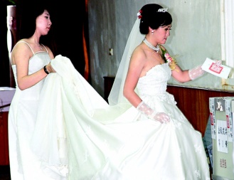 澎湖縣昨天舉行博弈公投,披著白紗的新娘也不放棄投下寶貴一票,公投結(jié)果反賭勢力獲勝。(來源:臺灣《聯(lián)合報(bào)》)
