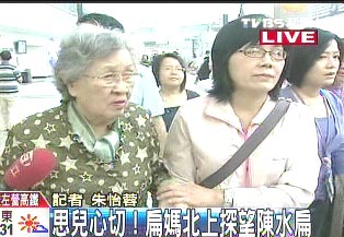 今天是陳水扁的農(nóng)歷生日,陳水扁的母親雖然身體不適,但仍堅持北上探望,想看看兒子現(xiàn)在的情況,她拄著雨傘拐,陪同在側(cè)的女兒還不時提醒慢慢走。
