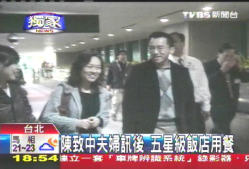 上午的庭訊結(jié)束后有民眾直擊,陳致中夫婦倆搭車到喜來(lái)登飯店2樓的泰式餐廳用餐。(圖片來(lái)源:臺(tái)灣TVBS電視臺(tái))