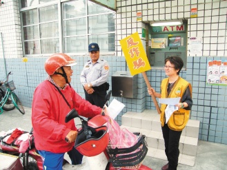 全臺灣警力昨天都投入防詐騙倡導(dǎo),配合志工守護(hù)在提款機(jī)附近。來源:臺灣《聯(lián)合報》