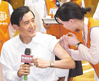 馬英九昨天帶頭接種國(guó)光甲型H1N1流感疫苗。(圖片來(lái)源:臺(tái)灣《聯(lián)合報(bào)》)