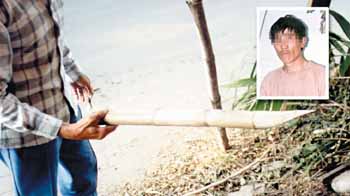 林姓女童十三年前慘遭歹徒以竹竿插入下體,圖為警方在現場找到的犯案尖竹,小圖為嫌犯十二年前落網時的照片。 來源:《聯合報》