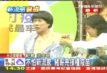 豬哥亮半裸接種甲流疫苗 安排失誤差點挨兩針(圖)