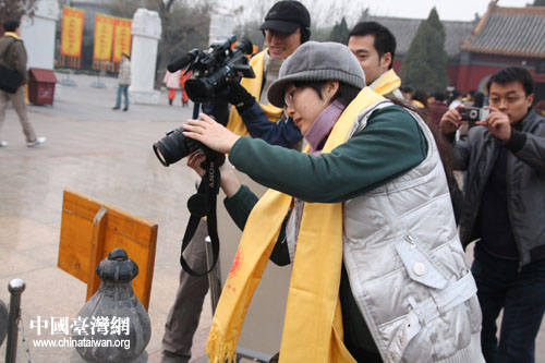 圖為臺(tái)灣媒體記者準(zhǔn)備進(jìn)行謁拜黃帝儀式(中國臺(tái)灣網(wǎng) 徐維彬 攝)