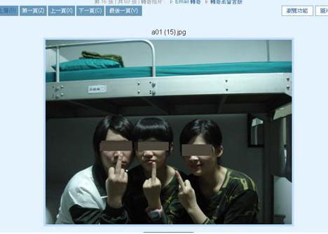 上圖:堂堂軍人卻公然做出不雅手勢還合照留念 。圖片來源:臺灣“今日新聞網”