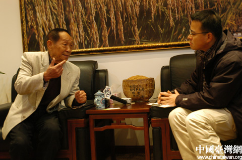 中國臺灣網12月18日長沙消息 帶著如何應對世界糧食危機的疑問,12月17日,臺灣TVBS電視臺記者莊志偉、李皇龍來到湖南省雜交水稻研究中心,采訪了袁隆平院士。