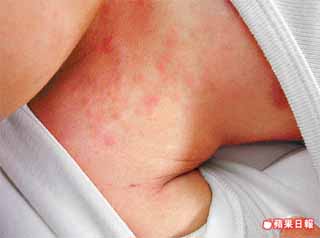 打完疫苗5天后,劉姓男童高燒不退、紅疹更從雙腳往上蔓延到雙手、頸部,布滿全身。 來源:臺(tái)灣《蘋果日?qǐng)?bào)》