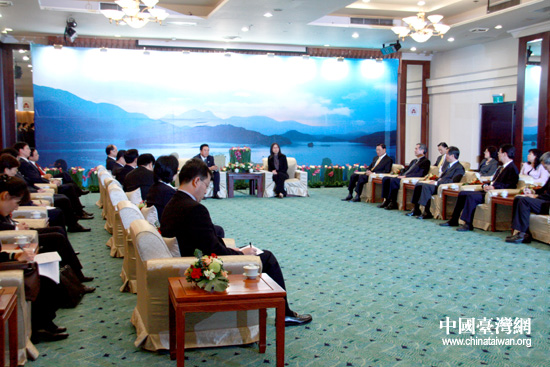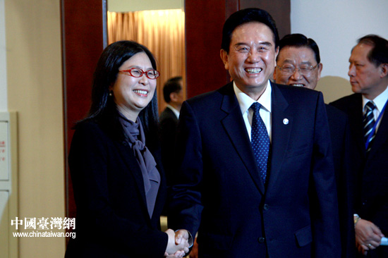 22日下午,參加兩會第四次領導人會談的海協會會長陳云林與臺灣大陸事務主管部門負責人賴幸媛會面。(中國臺灣網 李徽 攝)