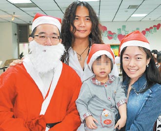 陳致中(左)黃睿靚(右)夫婦因涉嫌洗錢案昨天被檢方起訴,但是他們似乎不受官司纏身的困擾,昨天帶著女兒,突然出現在高雄市無障礙之家,參加圣誕聯歡活動。來源:臺灣《聯合報》