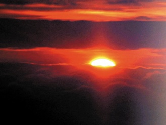 來自臺(tái)北的38人“空中追日”旅行團(tuán)清晨6點(diǎn)30分,在臺(tái)東縣離島蘭嶼東方海里約5500英尺高空,幸運(yùn)目睹2010年第一道曙光從海平面升起。來源:臺(tái)灣《聯(lián)合晚報(bào)》