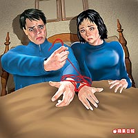 鐘裕雄與妻子林寶雪,疑似將父親鐘火路喂藥后,在其房?jī)?nèi)燒炭。然后夫妻兩人接著回臥室手綁紅線燒炭自殺。來源:臺(tái)灣《蘋果日?qǐng)?bào)》