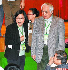 民進黨主席蔡英文(左)強勢主導會議,儼然成為“強力小英”。來源:臺灣《蘋果日報》