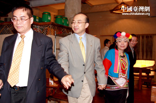 6日晚,全國臺聯會長梁國揚一行在臺北縣淡水與臺灣少數民族人士聯歡。(中國臺灣網 田云鵬 攝)