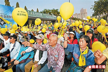“阿扁俱樂部”高雄總部昨成立,挺扁民眾吁釋放陳水扁。來源:臺灣《蘋果日報》