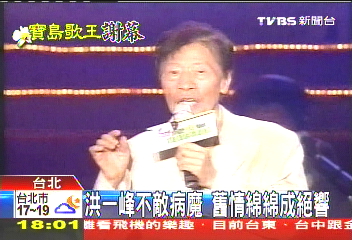 臺當(dāng)局“新聞局”去年也撥款新臺幣400萬元,補(bǔ)助洪一峰的兒子洪榮宏拍攝洪一峰的紀(jì)錄片。不幸的是,洪一峰去年檢查出胰臟癌末期,隨后感冒并發(fā)肺炎,引發(fā)敗血性休克后緊急送院治療。洪一峰入院后持續(xù)昏迷2個月,下午因胰臟癌引發(fā)多重器官衰竭辭世;社會大眾未來僅能透過紀(jì)錄片,以及他遺留的經(jīng)典作品,緬懷這位才華洋溢的“寶島歌王”。