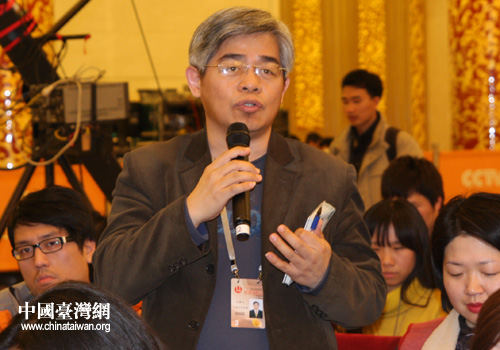 中國臺灣網(wǎng)3月2日北京消息 2日下午,在全國政協(xié)十一屆三次會議新聞發(fā)布會臨近尾聲的時候,主持人主動提出讓來自臺灣的媒體提一個問題,這個寶貴的機會被臺灣《中國時報》記者王銘義拿到。