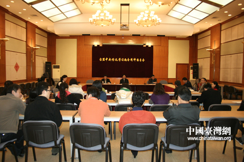 3月24日上午,臺盟中央在京召開會議,傳達2010年全國“兩會”精神。全國政協(xié)常委、臺盟中央副主席黃志賢主持會議。圖為會議會場。 (中國臺灣網(wǎng)發(fā) 劉中威攝)