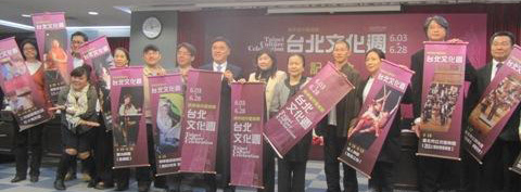 臺(tái)北市政府利用今天市政會(huì)議會(huì)后記者會(huì)舉行“兩岸城市藝術(shù)節(jié)─臺(tái)北文化周”宣告啟動(dòng)記者會(huì)。包括明華園團(tuán)長陳勝福、優(yōu)人神鼓藝術(shù)總監(jiān)劉若瑀、國光劇團(tuán)導(dǎo)演李小平、當(dāng)代傳奇劇場制作人林秀偉、屏風(fēng)表演班演員朱德剛,以及臺(tái)北市立交響樂團(tuán)團(tuán)長黃維明、臺(tái)北市樂團(tuán)團(tuán)長鍾耀光等人都出席今天記者會(huì)。