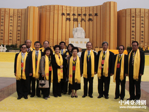 應邀出席黃帝故里拜祖大典的中國國民黨副主席林豐正一行合影。圖片來源:河南省臺辦