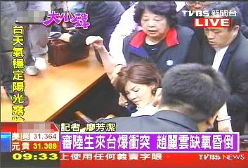 原本應(yīng)該在9點(diǎn)開始的議會(huì),藍(lán)綠民代竟然為了搶發(fā)言權(quán),爆發(fā)全武行,場(chǎng)內(nèi)一片混亂,100多位校長(zhǎng)也只能在會(huì)場(chǎng)外干等;在沖突當(dāng)中,民進(jìn)黨民代葉宜津一開始被壓在桌上,痛得哇哇大叫,賴清德和洪秀柱甚至直接站在桌上對(duì)罵,國(guó)民黨民代趙麗云還被壓住脖子,最后竟然昏倒送醫(yī)。