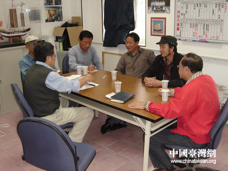 舟山專家與臺灣同行一道研究風帆制作安裝。圖片來源:舟山市臺辦