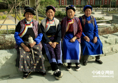 小金縣的藏族老奶奶們坐在和諧廣場(chǎng)內(nèi)聊天。(中國(guó)臺(tái)灣網(wǎng) 高斯斯 攝)