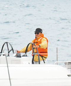 潤泰集團總裁尹衍梁駕駛大潤發(fā)號,循海峽杯帆船賽航線到大陸廈門。圖片來源:臺灣《聯(lián)合報》