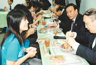 呂祖善昨日還到訪臺(tái)灣大學(xué),午餐時(shí)與臺(tái)大學(xué)生輕松地話家常,學(xué)生直說“省長好親切”圖片來源:臺(tái)灣《中國時(shí)報(bào)》