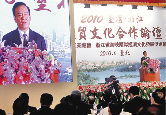 “2010臺(tái)灣·浙江經(jīng)貿(mào)文化合作論壇”,浙江省長呂祖善致詞表示,將加強(qiáng)浙江與臺(tái)灣多元化合作。圖片來源:臺(tái)灣《旺報(bào)》