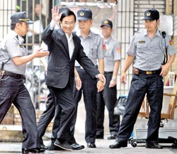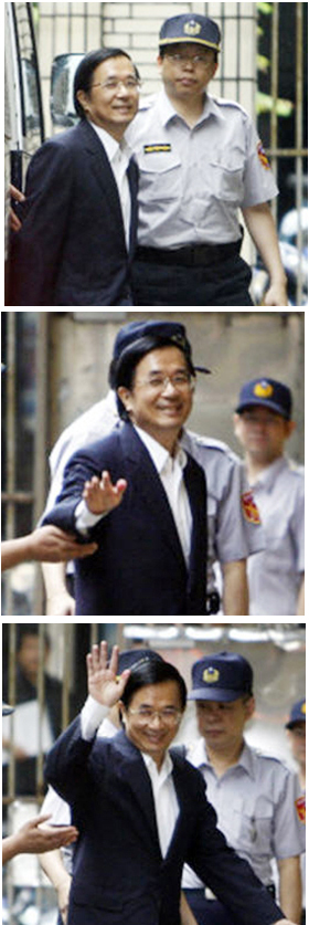 陳水扁向守候的媒體揮手。圖片來源:臺灣《中國時報》