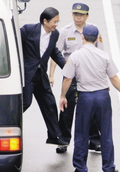 陳水扁走下臺北看守所車輛,在警員監看下步入法院。圖片來源:臺灣《聯合報》