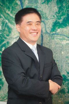 臺北市長郝龍斌極力促成下,松山、虹橋機場今天對飛,郝龍斌搭首航班機飛抵上海世博。圖片來源:臺灣《聯合報》