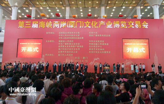 第三屆海峽兩岸(廈門)文化產業博覽交易會是第二屆海峽論壇相關活動之一,由國務院臺辦、民革中央、文化部、廣電總局、新聞出版總署為指導單位,福建省人民政府、中華文化聯誼會、中華廣播影視交流協會、中國出版工作者協會、臺灣亞太文化創意產業協會、臺北世貿中心、澳門特別行政區文化局、香港藝術發展局、臺灣中華演藝總工會、臺灣中華文化創意學會共同主辦,是目前大陸唯一由海峽兩岸共同舉辦的文化產業盛會。(記者 張弛)