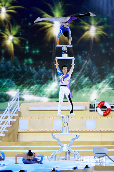 雜技表演《挑戰(zhàn)——雙人晃管》引來觀眾一陣陣掌聲。(中國臺灣網(wǎng) 鐘寶華 攝)